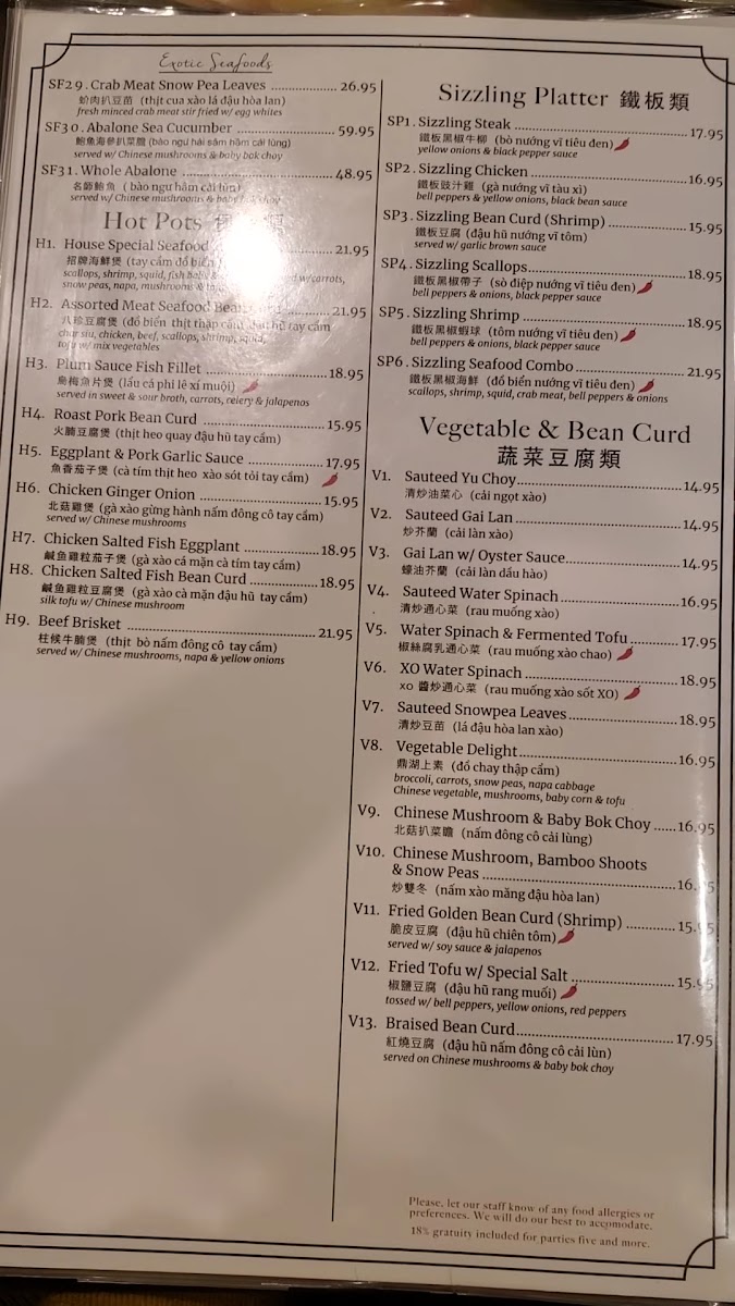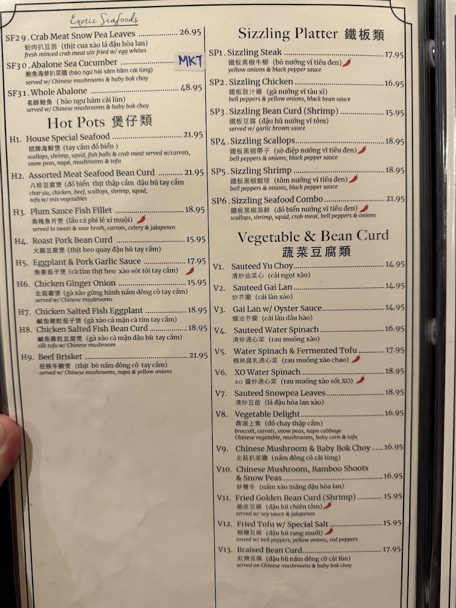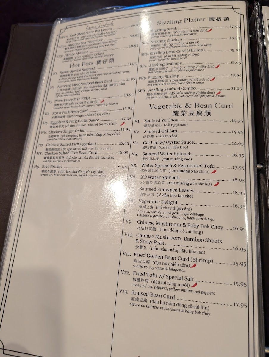 魚香牛 Tender beef wok-tossed with crisp vegetables in a fragrant garlic sauce with hints of sweetness and spice. (bamboo shoots, celery, mushrooms, onions, bell peppers & water chestnuts, spicy)