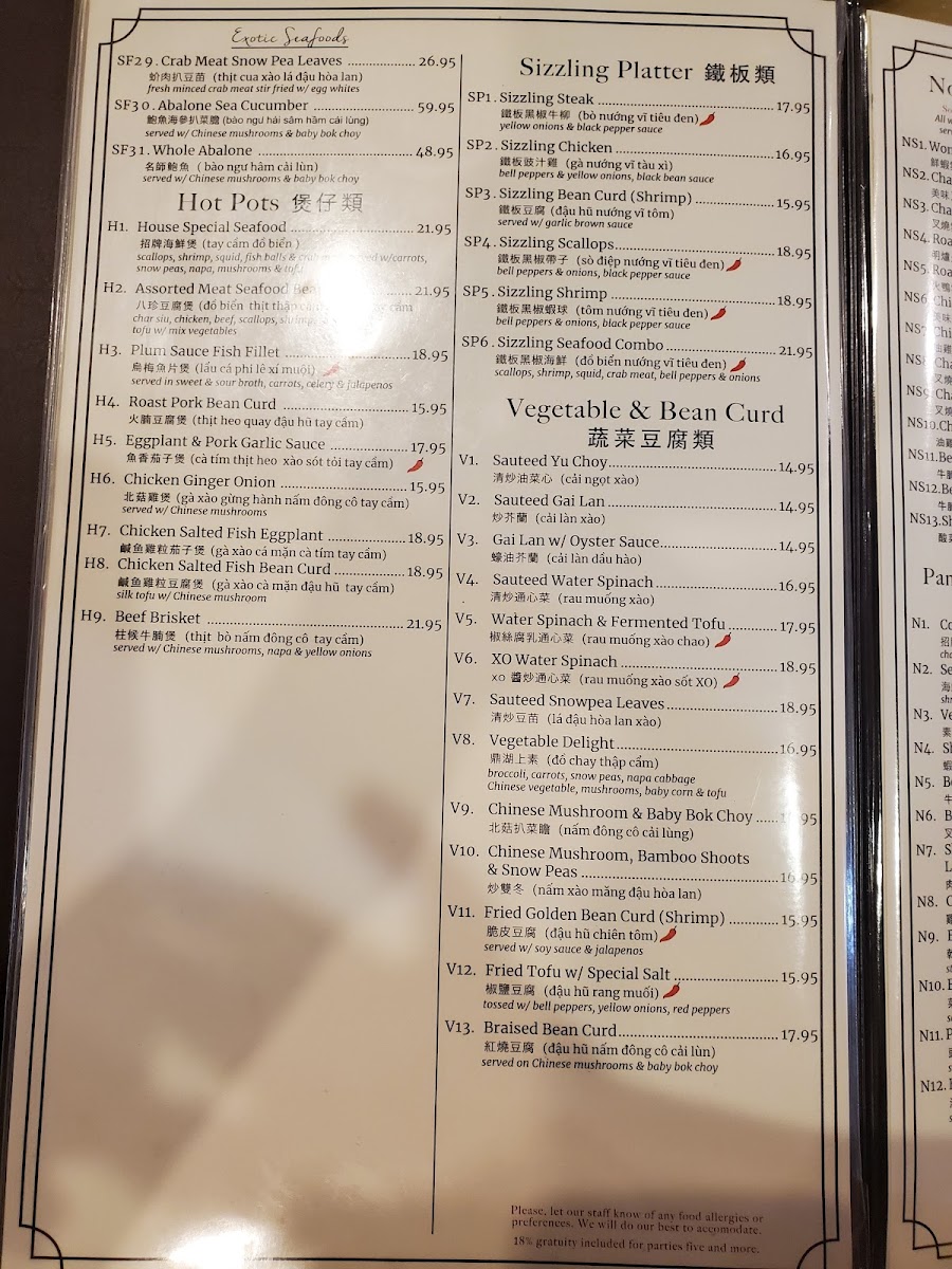麻婆豆腐 silken tofu w/ shredded pork in Szechuan sauce, peas & carrots, topped with green onions. spicy.